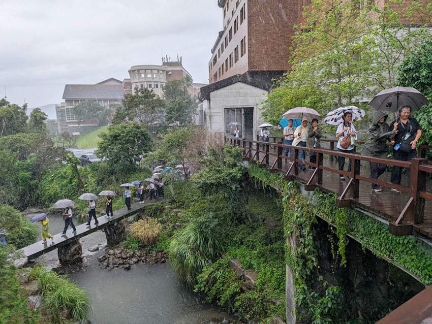 果然,我對未來的擔心是多餘的。颱風天裡,我們的大巴抵達農禪寺。幾百人一下車,就見幾十位法師與義工們冒雨迎接,一把傘接著一把傘,接力相送。耳邊傳來一句句「阿彌陀佛,歡迎回家」,那一刻,大雨成了法水,洗滌身心。原本對暴雨的抗拒,化作深深的感動與慚愧。這場暴雨,不只是一場天氣,更是一場修行的因緣。